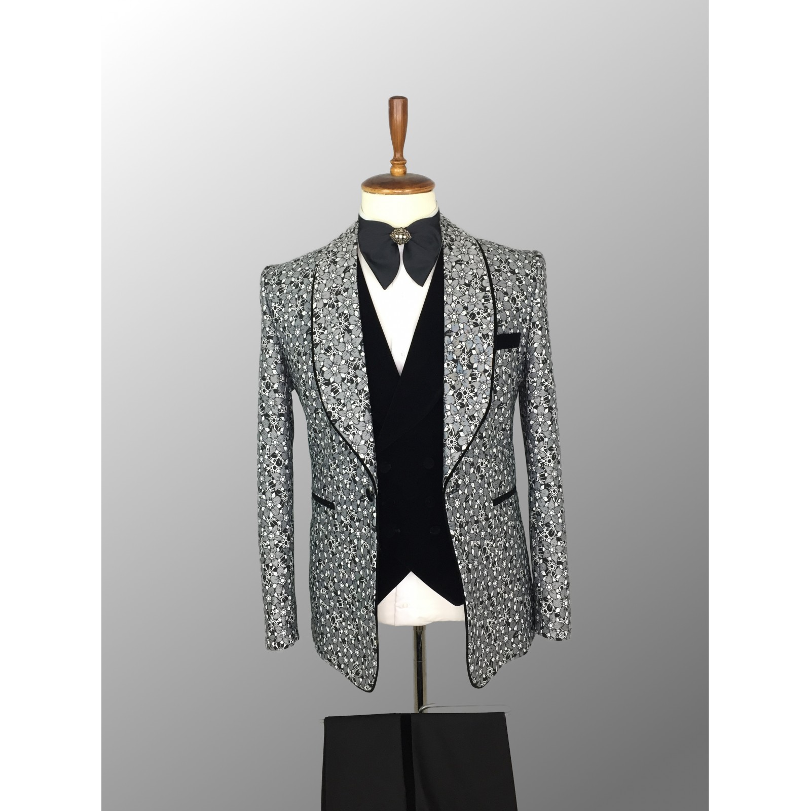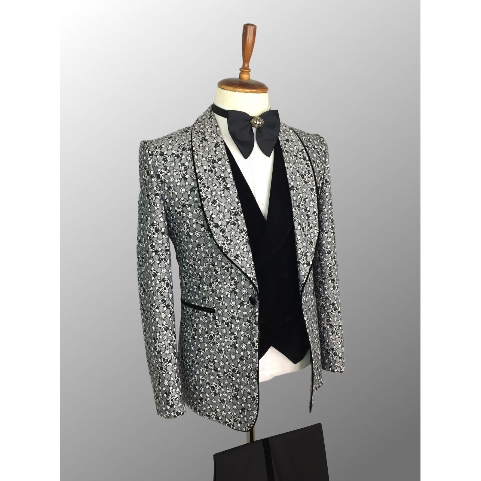 Tuxedos with flower designs always have been everyone's favorite. We shaped this unique flower fabric into a tuxedo. Our designer brought greatness and our tailors brought quality into this tuxedo seamlessly.