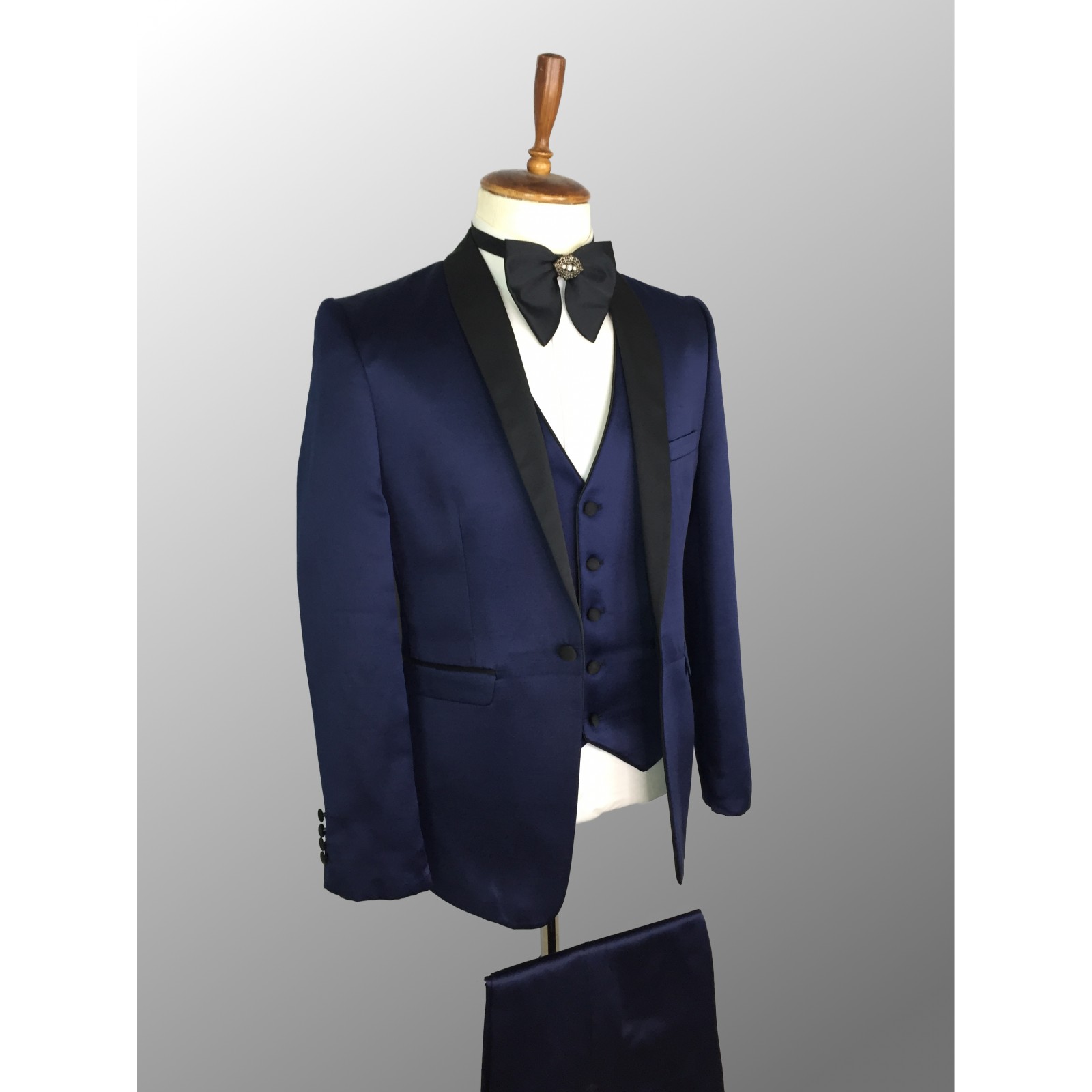 Navy Blue Sateen with Black Lapel Tuxedo
